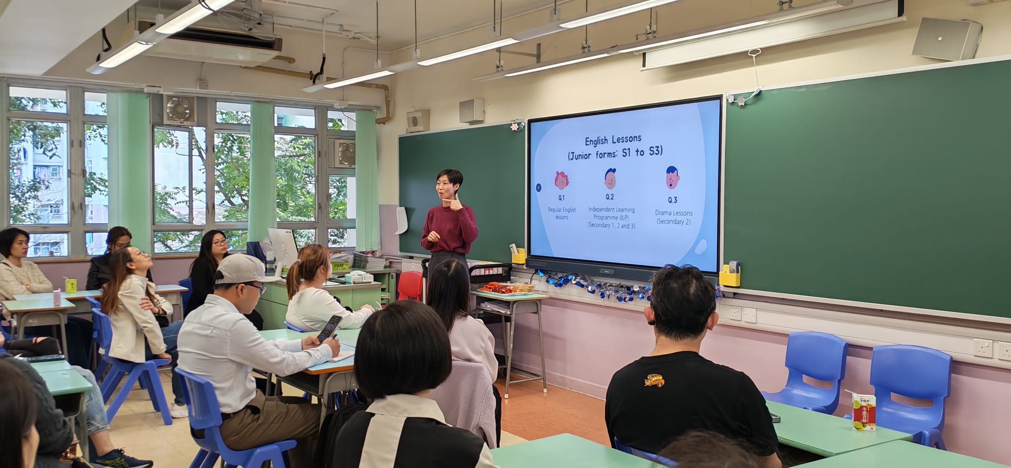 本會邀請了何淑妍校長、中文科科主任劉怡玲老師、英文科科主任林詩影老師和數學科科主任黎潔瑩老師,撥出寶貴時間與家長茶聚,協助大家解答有關學習的問題,並分享「如何協助子女銜接中學學習」,讓家長可更清楚掌握情況。