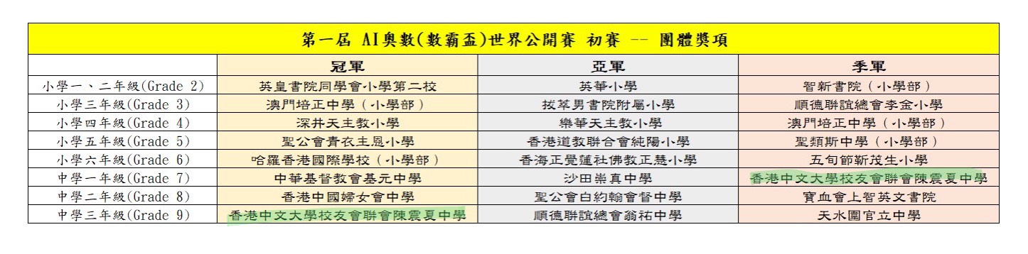 本校學生於第一屆 AI 奧數 (數霸盃) 世界公開賽取得優良成績