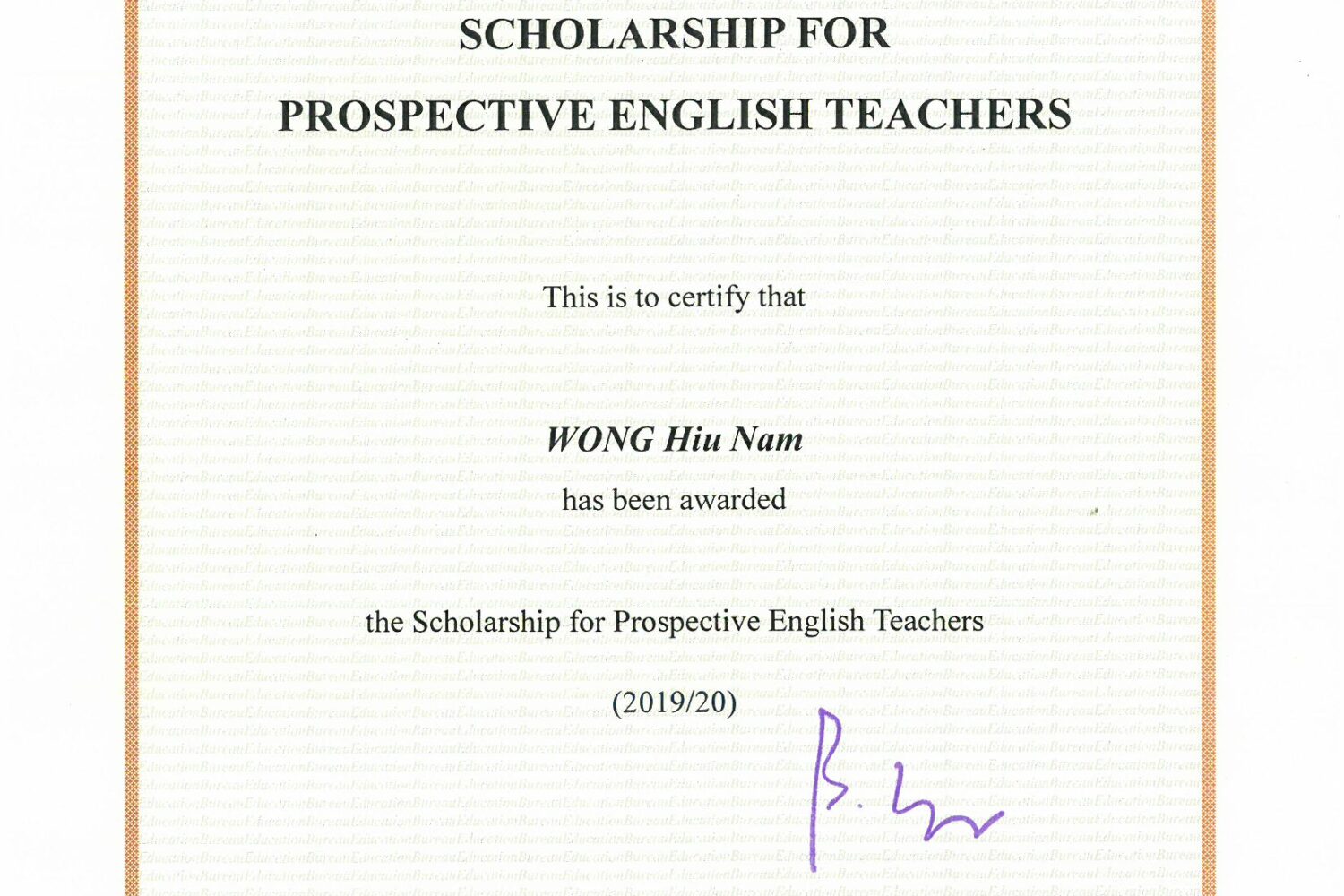 本校校友黃曉嵐同學榮獲教育局頒發「準英語教師獎學金」