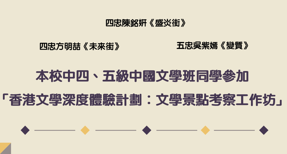 本校中四、五級中國文學班同學參加「香港文學深度體驗計劃:文學景點考察工作坊」